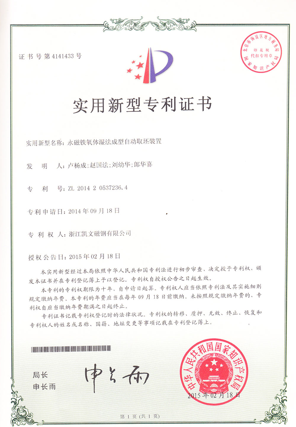 永磁鐵氧體濕法成型自動取坯裝置