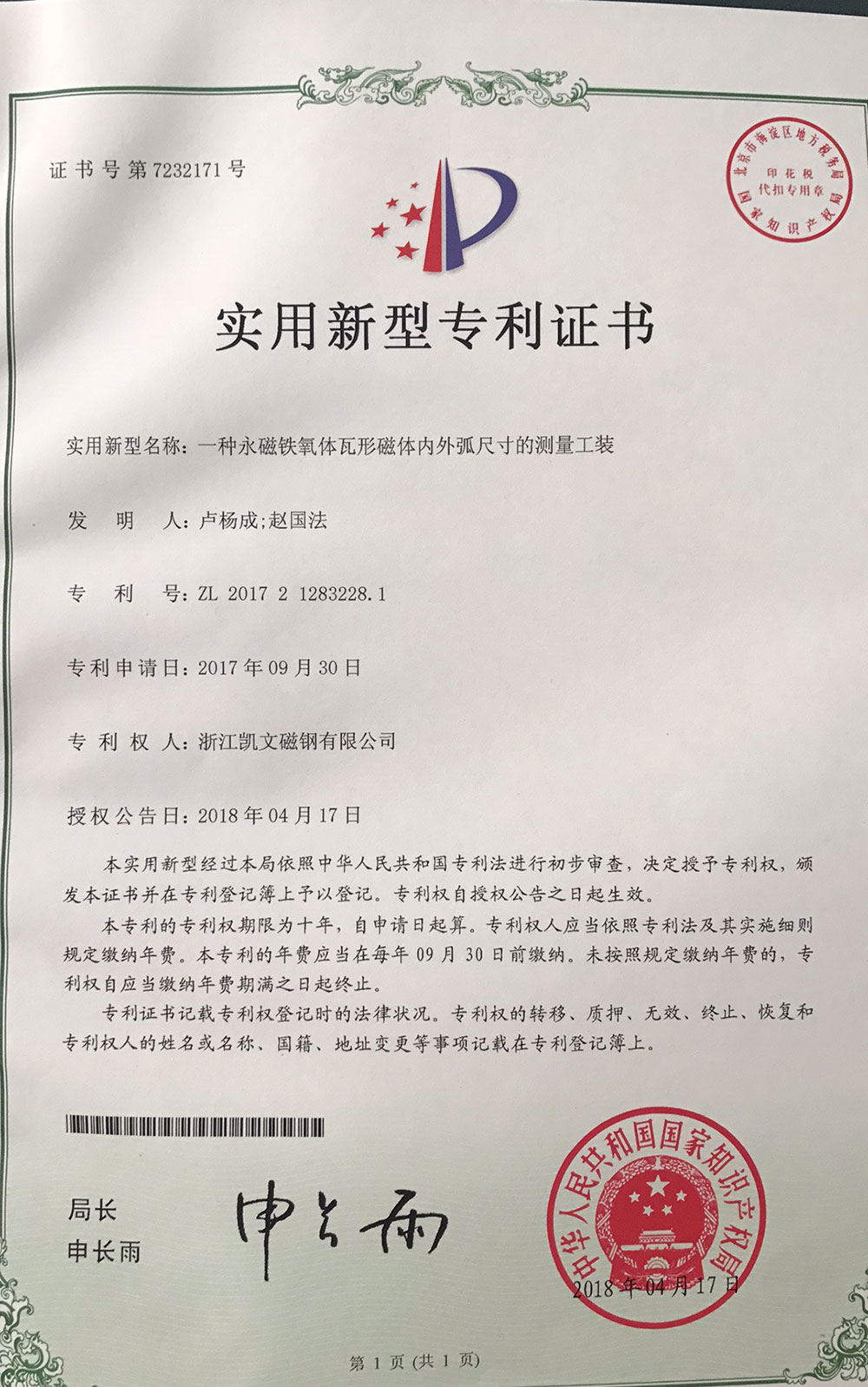 永磁鐵氧體瓦形磁體及其模具