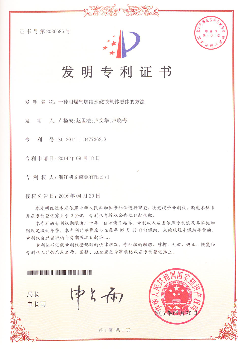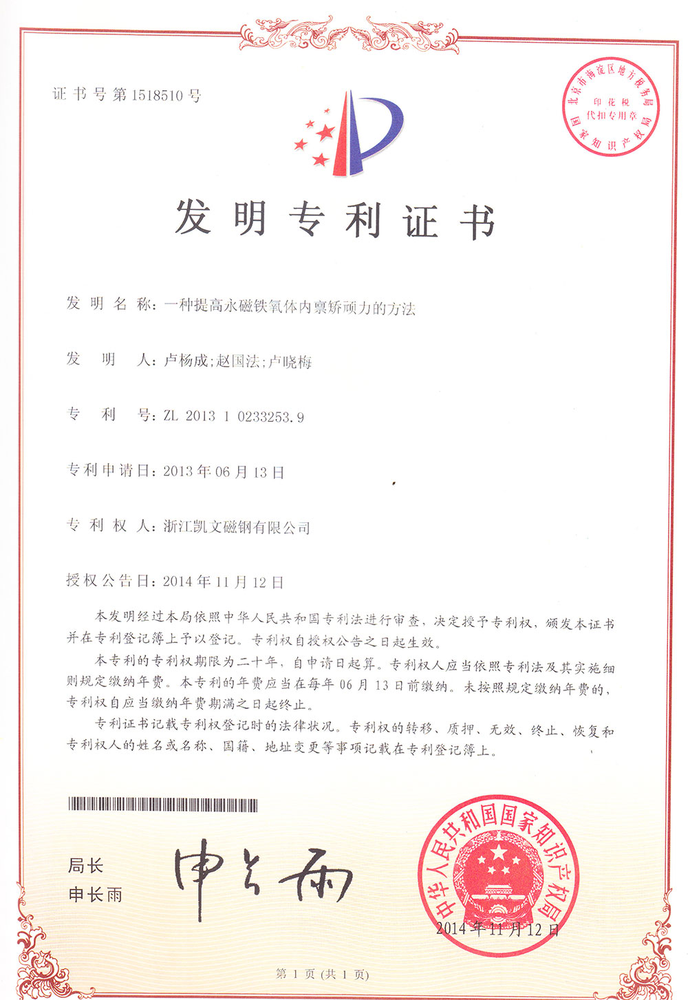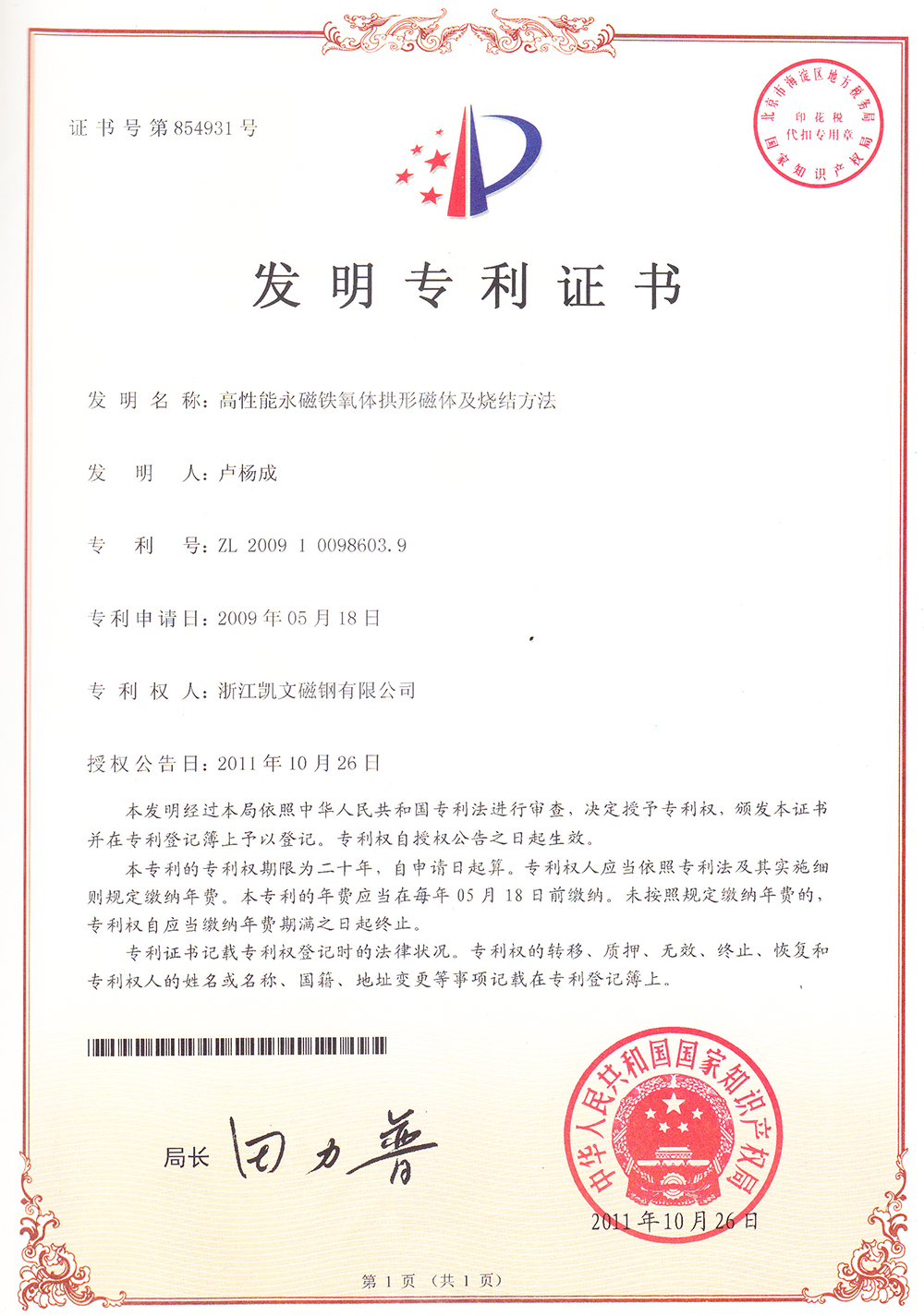 高性能永磁鐵氧體磁體及燒結方法