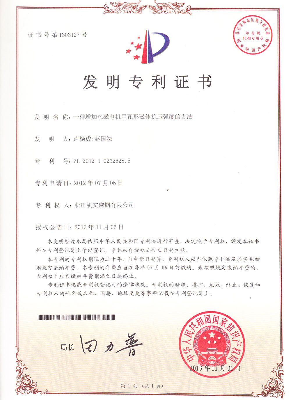 一種增加永磁電機用瓦形磁體抗壓強度的方法